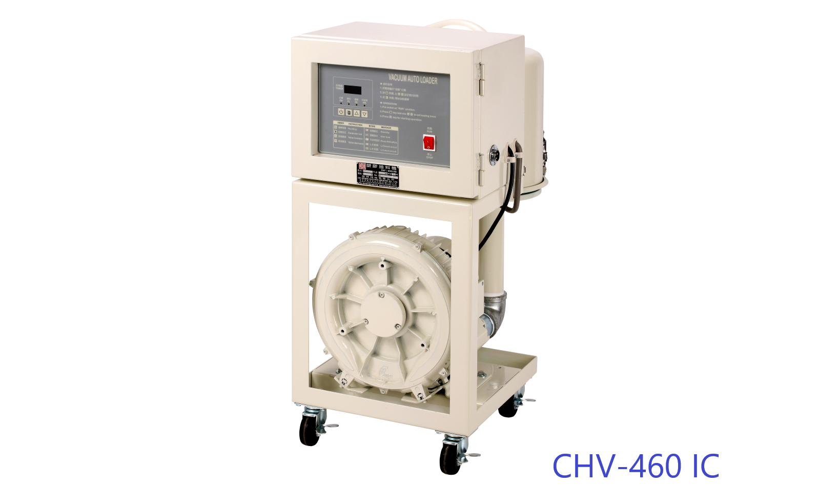 採用全密式感應誘導馬達,主機與料桶分離,將固重的主機置於地面,易於操作,維修容易,方便安全,提供 1HP ~10HP機型